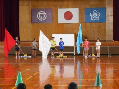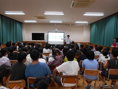 また、生徒指導主事(吉田先生)、安全指導担当(村山先生)から、「自分の命は自分で守ること」や「心のブレーキをかけること」、「集団登校で気をつけてほしいこと」など、2学期も意識して頑張ってほしいことについて話がありました。