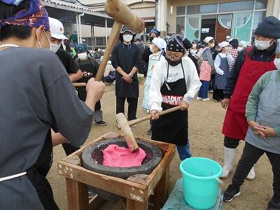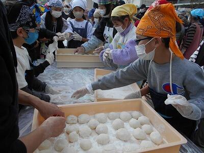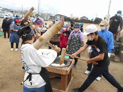 子どもたちは、リズムよく声をかけ合い心から楽しみながら「もちつき」をしたり、友だちと笑顔でコミュニケーションをとりながら温かいもちを丸めたりする等、普段することができない貴重な体験をさせていただきました。