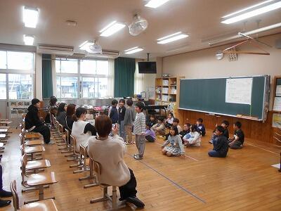 1年生では、国語や算数、生活科などの様々な教科について、1年間で頑張ったことや学んだことを発表していました。3年生では、総合的な学習の時間において、盲導犬の学習やアイマスク体験を通して学んだ福祉のことについて発表をしました。5年生では、1年間を通した米作りや、収穫した餅米を用いた餅つき大会を通して学んだことについて発表を行いました。子どもたちは皆とてもいい表情で自信をもって発表していました。