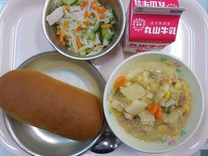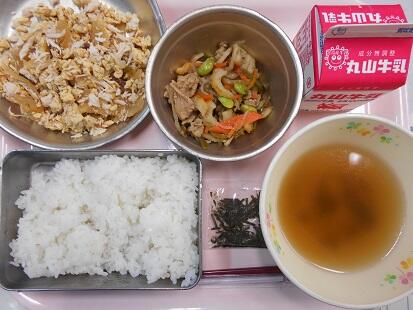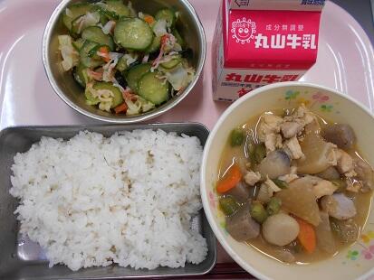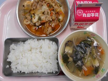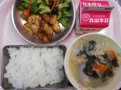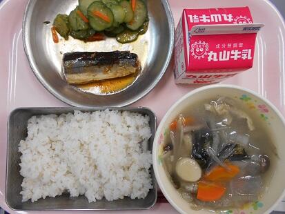 今日の献立表は〝いわしのかぼすレモン煮〟となっていますが、〝さんまのかぼすレモン煮〟に変更しています。