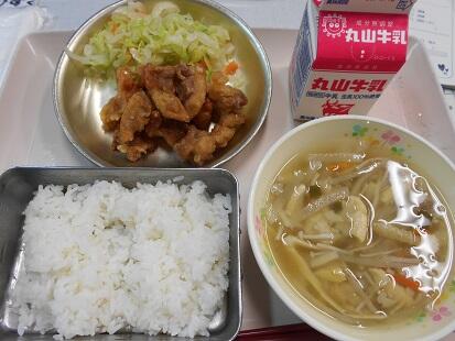 子ども達がいるから給食があり私が献立作成し、それを子どもたちが「美味しい」と食べてくれる。そこに至るまでには、調理員さんや、新鮮な野菜を納入し下さる八百屋さん、お肉屋さん、魚屋さんなどなど、そして、野菜を作ってくださる方々、牛や鶏、豚を育てて下さる方々、運送業者さんなどなど。もう、ほんとに、たくさんの方々のお陰で写真の給食ができること。毎日のように書いてしまうのですが、感謝の気持ちでいっぱいです。