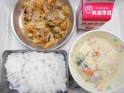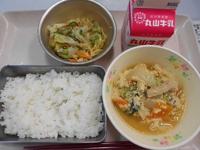 今日の検食日誌『豚キムチ丼は、キムチの味がしっかりとしみ込んでいるのだけど子どもたちにとって辛くない美味しい味でした。ご飯によく合いました。ふわふわの玉子スープ、熱々の豆腐など、、体が温まりました。』とのことでした。