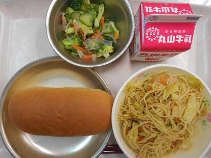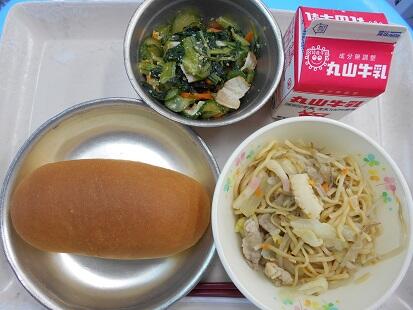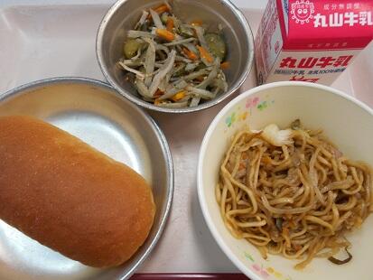 【コッペパン・ラーメン・チンゲン菜のごま油和え・牛乳】