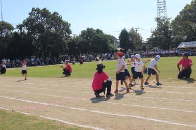 プログラム10番「2、5年生800メートルリレー」からプログラム15番「2年生50メートル走」までを紹介します。