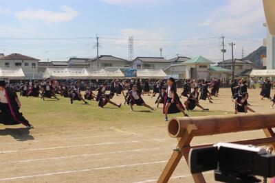 5年生が渾身の力を発揮し、ソーランの舞を披露しました。