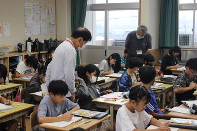 昨日、そろばんの学習のため、旭珠友会の今村様が来校されました。