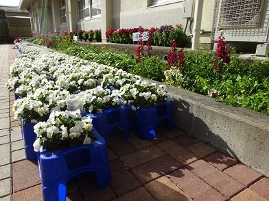 各学級の花壇もきれいな花々で色とりどりです。子どもたちの登校を待ちわびています。