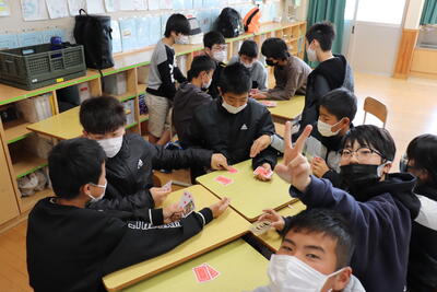 3学期も残すところ、わずかとなりました。3月20日(月)、2年生の各学級でお楽しみ会が行われていました。自分たちで進行し、出しものやいす取り、ハンカチ落としなどのゲームを楽しんでいました。ハンカチ落としでは、ハンカチの代わりにペーパータオルを使用するなど、コロナ禍ならではの工夫?も見られました。今年度を振り返りながら、楽しく過ごす2年生でした。