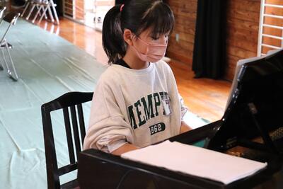 5月10日(水)、5月の全校朝会を体育館で行いました。校長先生から、校内にも巣をつくっている「ツバメ」を題材にしたお話がありました。その後、メキシコ民謡「ラ・ゴロンドリーナ」(スペイン語でツバメ)のリコーダー演奏が、國武教諭とのアンサンブルで披露されました。二人の奏でる音色に、子どもたちも興味津々でした。