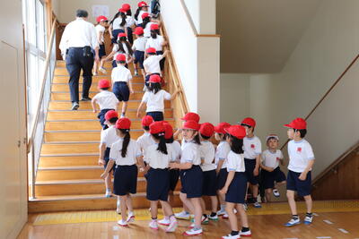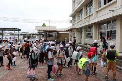安全確認の放送が流れると、各学級で振り返りを行いました。本来であれば、その後、引き渡し訓練を実施予定でしたが、今回は天候等に事情で中止させていただきました。引き渡し訓練に参加するため、お仕事などを調整していただいた保護者の皆さまには、大変ご迷惑をおかけいたしました。