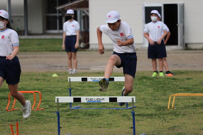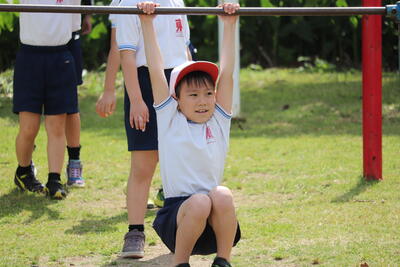 6月7日(水)、久しぶりの晴天となりました。梅雨の晴れ間に3年1組、3組が運動場で体育を行っていました。1組は「幅跳び」、3組は「鉄棒運動」に取り組んでいました。低学年では「〇〇運動遊び」として、運動を楽しむことが中心でしたが、中学年からは少しずつ運動領域ごとに学習内容が重点化されてきます。この時期の子どもは、吸収力が高いですね。練習を重ねる度に、動きがスムーズになってくる3年生でした。