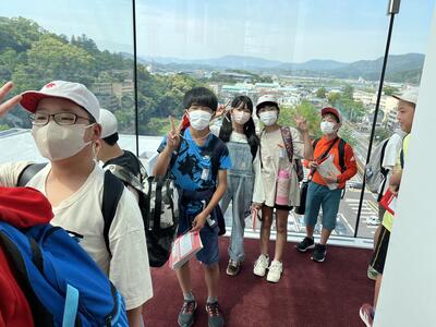 3年生の目的地は、愛宕山でした。社会科の学習の一環として、頂上から延岡市の様子を一望しました。頂上までの道のりでかなり疲れがありましたが、帰りはタクシーで帰校しました。