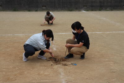 運動場の危険物一斉点検
