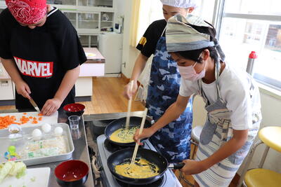 5月30日(火)、6年生が家庭科で、炒める調理に取り組んでいました。挑戦していたのは「三色野菜いため」と「スクランブルエッグ」です。グループ内で役割分担しながら、手際よく料理を進めていました。これだけできれば、家庭の食卓に並んでも遜色ないはずです。お子さんに1~2品任せてみるのもありではないでしょうか。
