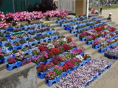 入学式(11日)を待つ美しい花々が、子どもたちをやさしく見守っています。