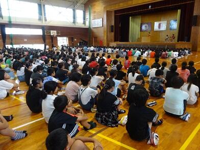 夏休みが終わりました。今日から令和元年度2学期のスタートです。体調不良等で数名のお友達が欠席でしたが、真っ黒に日焼けした元気そうな顔がそろいました。2校時には、体育館で始業式を行いました。
