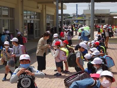 密をつくらないように配慮して、集団下校を行いました。1年生にとっては初めての集団下校。上級生が丁寧にサポートしていました。