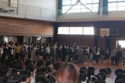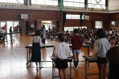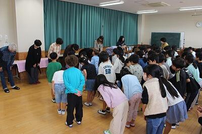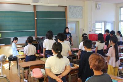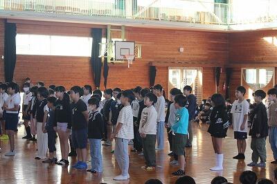 終わりの会では、まず6年生代表児童がお礼の言葉を述べ、4年生がリコーダーで「もののけ姫」を演奏しました。