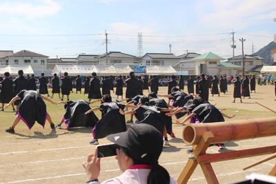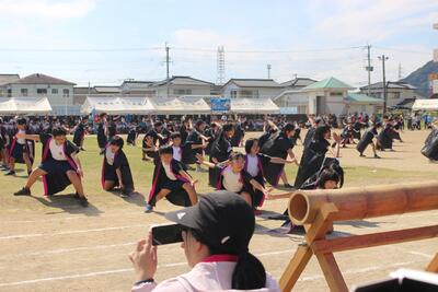 5年生が渾身の力を発揮し、ソーランの舞を披露しました。