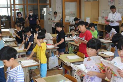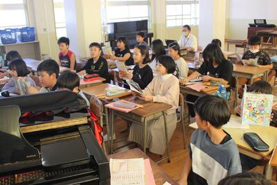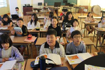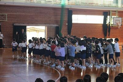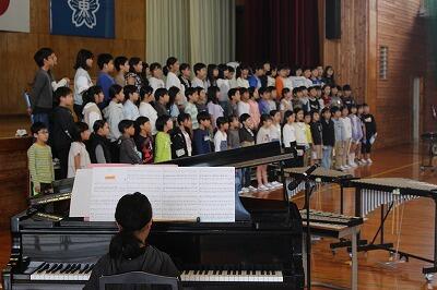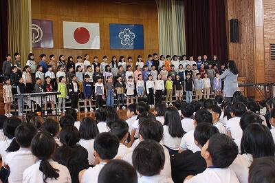 最後は代表児童がもみじの歌詞を暗唱した後、方財小学校の児童と一緒に歌も歌いました。