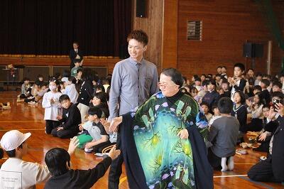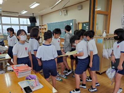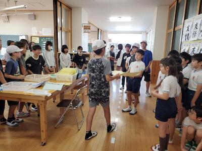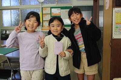 【米良さんに歓迎の手紙を書いて渡した2年生】