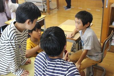校舎を一回りした後に校長室に戻ると、ちょうど4人の子ども達が反省会をしていました。