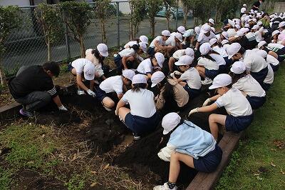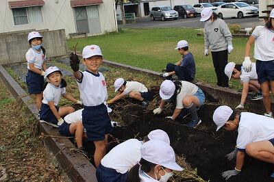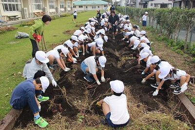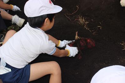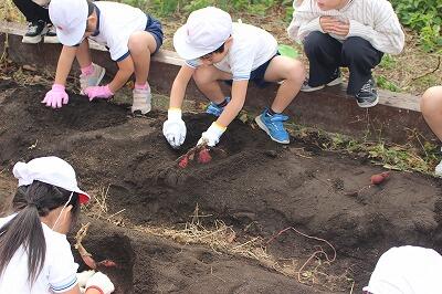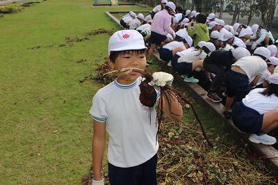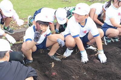中には一度に3、4本の芋を掘り当てる子どももいました。
