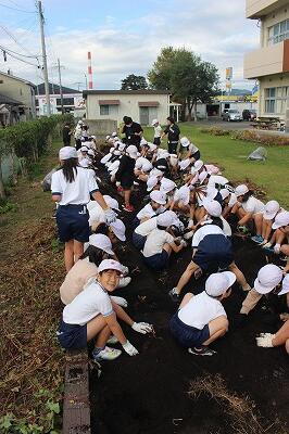 先週木曜日から、正門入り口横に学校花壇を設置し始めました。