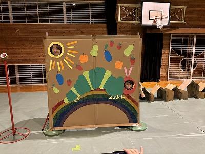 紙の箱を開いてイメージをふくらませたり、拾ったどんぐりを使って飾ったりしている作品です。