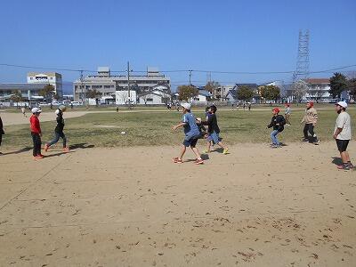 タグラグビー1時間目。ルールを少しずつ理解しながら進めています。