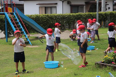 1年生が12日(火)にシャボン玉を飛ばしていました。