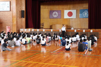 防災週間にあわせ、9月2日(金)に避難訓練を実施しました。今回の訓練は、地震発生後に津波の恐れはなく、給食室での火災発生を想定したものです。子どもたちは、緊急放送を聞き、担任の指示によって速やかに運動場へ避難することができました。その後教室に戻り、校内放送で校長先生から、東日本大震災での小中学生の事例などについてお話がありました。日頃から防災の意識を高め、万が一の際に冷静に行動できるよう備えておくことの大切さを改めて感じました。