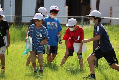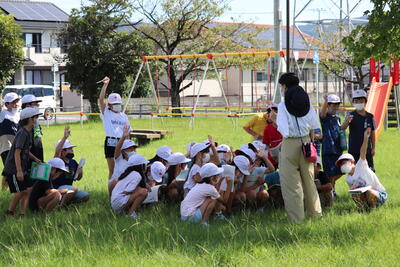3年生は理科で「こん虫のかんさつ」の学習中です。この季節、どのような昆虫が見られるかを、第6児童公園(通称:どんぐり公園)へ観察に行きました。草丈も伸びており、昆虫にとっては絶好の住みかとなっているようでした。子どもたちも、目を皿のようにして昆虫を探していました。さて、どんな昆虫が見つかったでしょうか。
