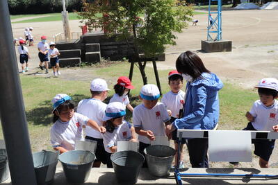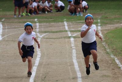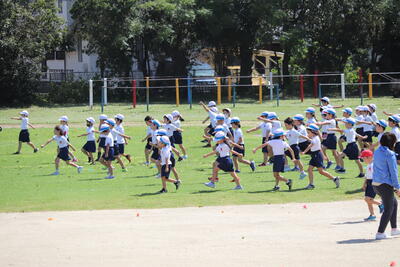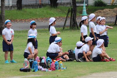 9月12日(月)より運動会の屋外練習がスタートしました。1年生は60m走のタイム測定を行いました。午前中は曇りでしたが、蒸し暑さがあり熱中症に気を付けながらの活動でした。就学前の運動会に比べると、走る距離も伸びたと思われますが、最後まで力一杯駆け抜ける姿が見られました。走り終わった子どもたちが、「がんばれ~!」と声援を送る姿も印象的でした。