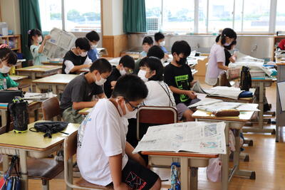5年生が、国語の時間に新聞を読んでいました。単元「新聞を読もう」の学習でした。本単元は、「目的に応じて、文章と図表などを結び付けるなどして必要な情報を見つけたり、論の進め方について考えたりすることができること」を主な目的として設定されています。
