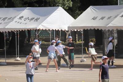 5年ぶりに復活した「新ばんば踊り」。以前は、お昼前の定番でしたが、今年度は午前中の真ん中あたりに位置付けました。一緒に参加していただいた保護者の皆さま、ありがとうございました。卒業生の中学生も多数参加してくれて、盛り上がりました。
