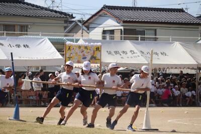 今年は、6年生の団技も復活しました。運動会の定番競技ですが、高学年になると力強さも加わりますね。どの団もチームワークよく、かなりの接戦となりました。