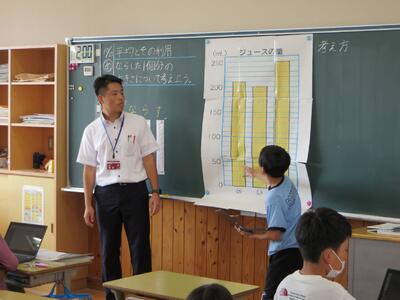 今日の2校時に5年1組にて、教育実習生が算数科の研究授業を行いました。
