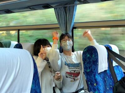 出発後のバス車中の様子です。どの学級も、出発直後からとても元気です。ガイドさんとの会話をはずませたり、校歌を歌ったりしています。早速、ガイドさんのクイズに全問正解し、商品をゲットした子もいるようです。