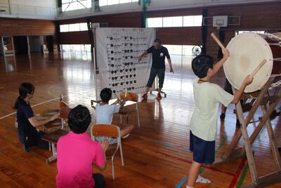 昨日(18日)の6校時、体育館から威勢の良い太鼓の音が響いてきました。
