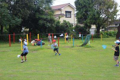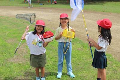 広々とした運動場に駆けだした子ども達は虫捕りに夢中。