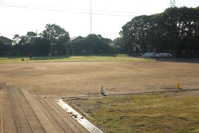 今朝、運動場を見るとラインが消え、若干水溜まり部分もありました。