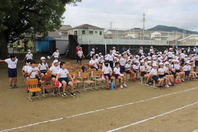 内容は、開閉会式の練習でした。整列の仕方、礼の仕方、話を聞く態度など、細かい部分の指導がありました。校長先生からは「運動会はすでに始まっています。団員の動き、リーダーの動きなども採点の対象です。自分たちで考えて動けるようにがんばりましょう。」というお話がありました。その後の子どもたちは、集中力が一段と高まったようでした。