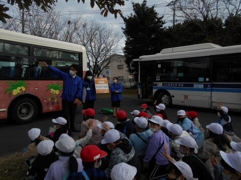 まずバスの乗り方や、バス停留所、時刻表の読み方などを教えていただきました。