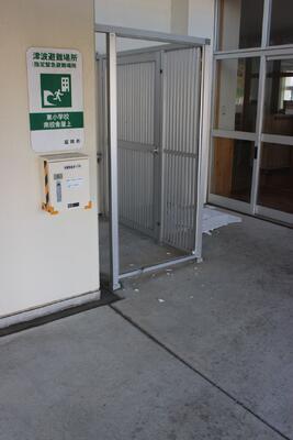屋上につながる施錠扉の地震解錠ボックスは作動しておりませんでしたので、緊急用避難扉を割って上がらざるを得なかったようでした。