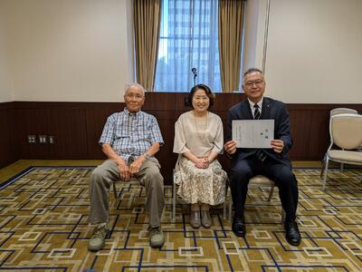 なお、当日いただきました趣意書の一部と、弓削達雄様、弓削三重子様との記念写真を紹介いたします。