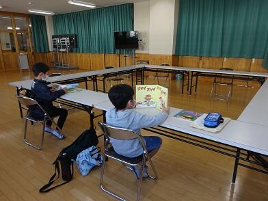 東小学校でも、緊急避難的にお預かりしている子どもさんがいますが、今日現在では3~4名程度の利用となっています。学校から出された課題や読書をして過ごしています。この数日間で課題を半分以上終わらせているようでした。