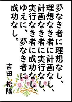 式辞は、「3分以内」と自ら縮小ノルマを設けました。励ましの言葉として吉田松陰(幕末の思想家)の