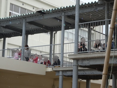 先程突然、中庭におびただしいシャボン玉が乱舞しました。学童保育に来ている子どもたちが、連絡通路から実に楽しそうに飛ばしていました。ストレスもたまっているのでしょう。あと少しだからね。