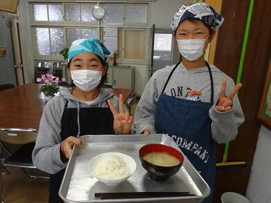 「5年3組です。家庭科の調理実習でご飯と味噌汁を作りました。よかったら食べてください。」とのこと。お盆の上には、ふっくらとよそったご飯とやわらかいお味噌の香りがたった味噌汁が鎮座していました。よく見ると味噌汁の具は大根と油揚げ。胃袋をわしづかみにされました。しかも、写真のような笑顔がそえられており、「今すぐいただきます」と受け取ると、給食のことはすっかり頭からなくなっていました。